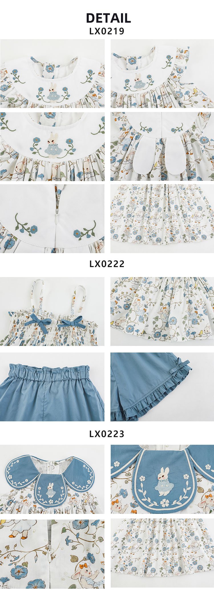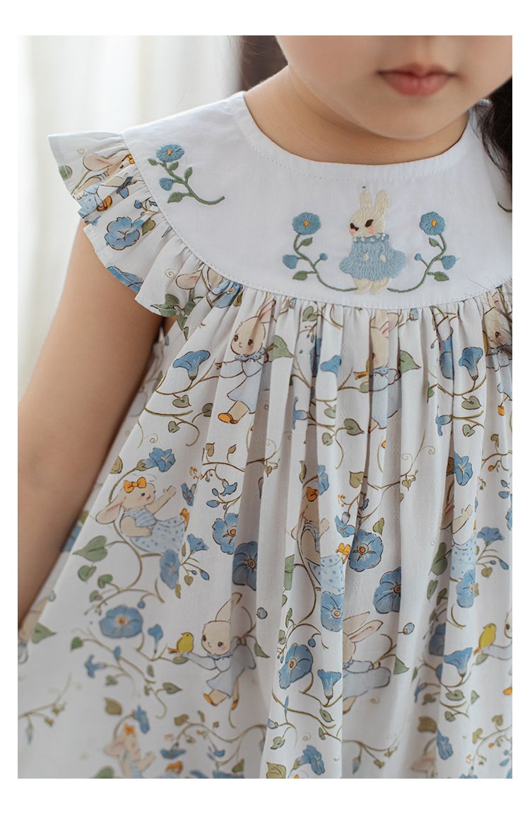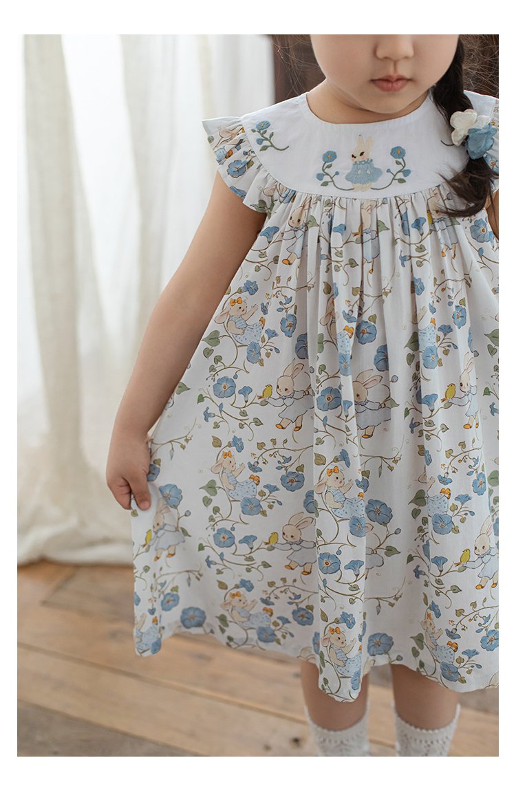 Summer cute blue floral bunny dress