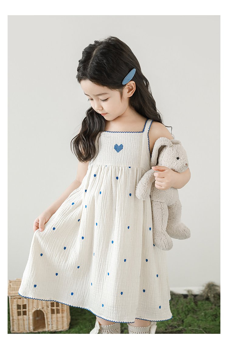 HomeShop -01For babyKidswearLove Heart Embroidered Cotton Baby Girl Summer Dress