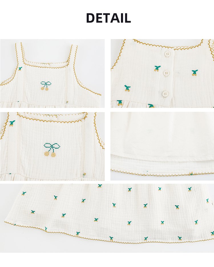 • White Cherries Embroidered Cotton Baby Girl Summer Dress